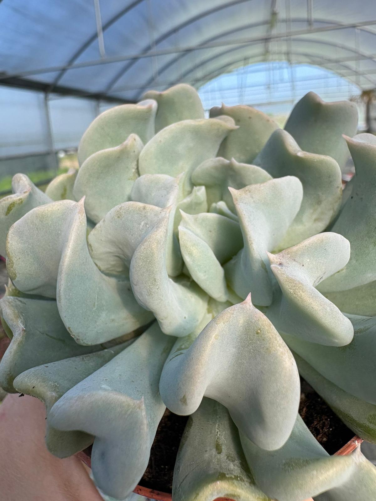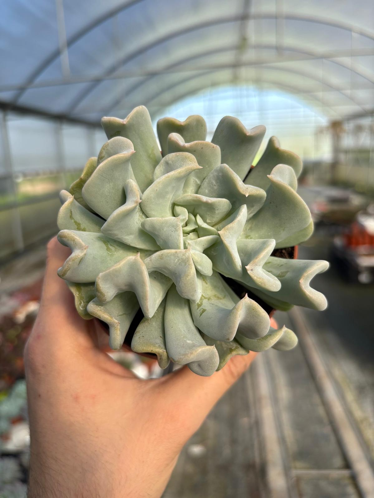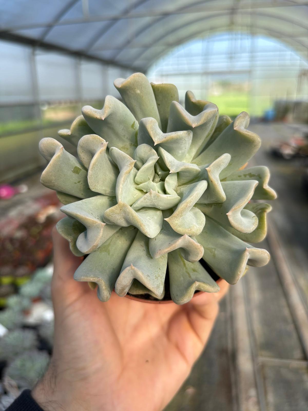 La Echeveria runyonii ‘Topsy Turvy’ è una succulenta molto apprezzata per la sua forma originale: le foglie carnose, di colore grigio-azzurro, si incurvano verso l’alto creando una rosetta compatta e scultorea. Facile da coltivare e molto resistente, è perfetta per vasi, composizioni di piante grasse e collezioni di succulente. Una varietà decorativa e insolita, capace di attirare subito l’attenzione. 🌵