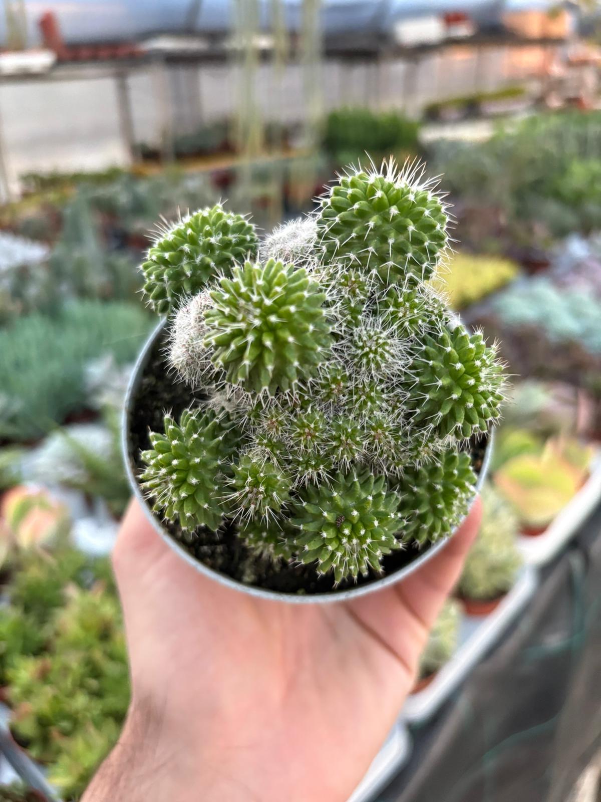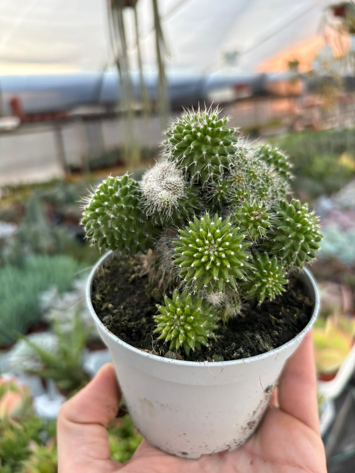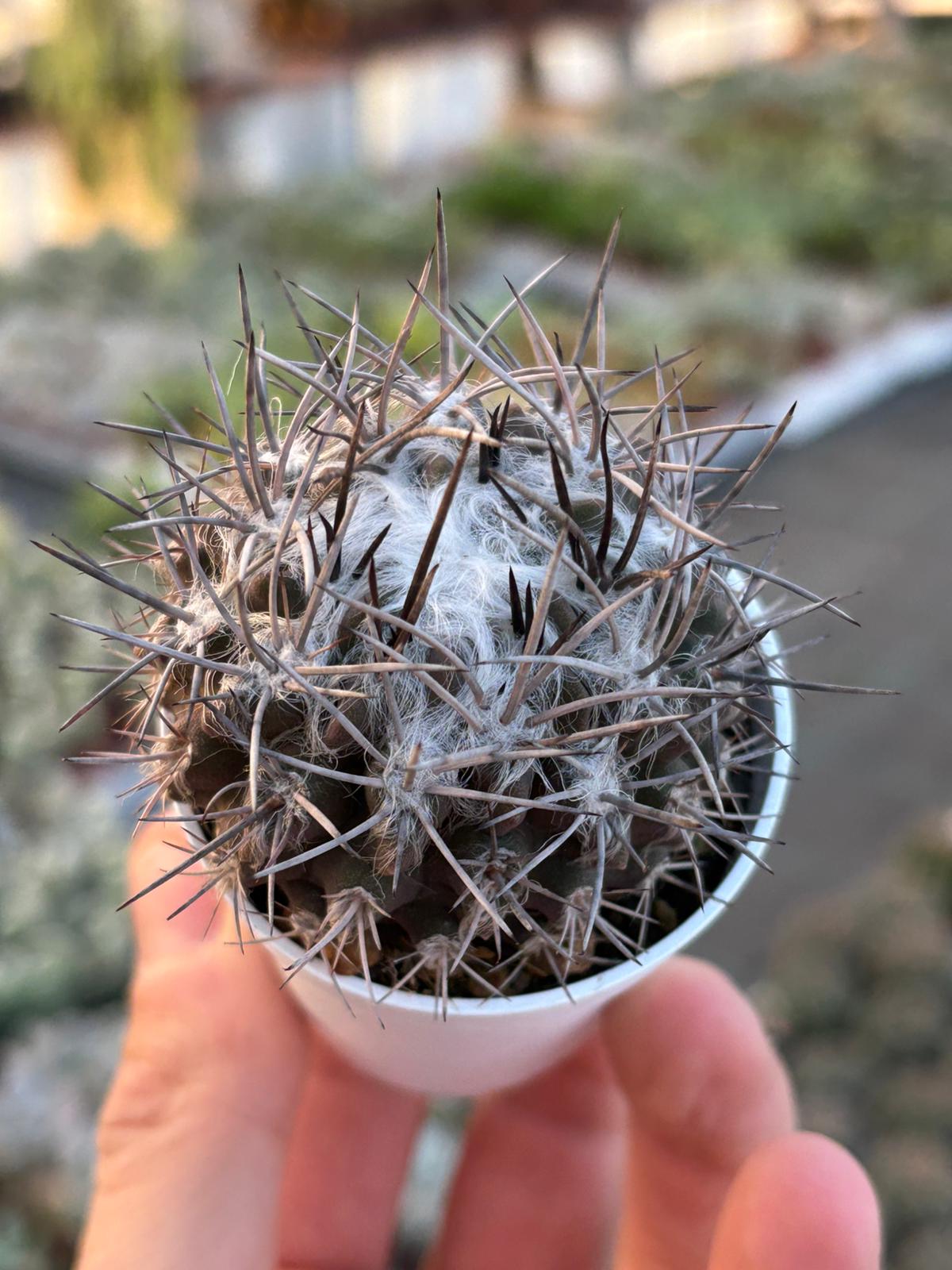 Mammillaria nejapensis è una cactacea messicana di piccole dimensioni, molto apprezzata per il suo aspetto ordinato e decorativo. Presenta un fusto globoso con tubercoli disposti a spirale e spine bianche, con centrali leggermente più scure che ne esaltano il contrasto. In primavera produce una graziosa corona di fiori bianchi o rosati attorno all’apice, seguita da piccoli frutti rossi ornamentali.
