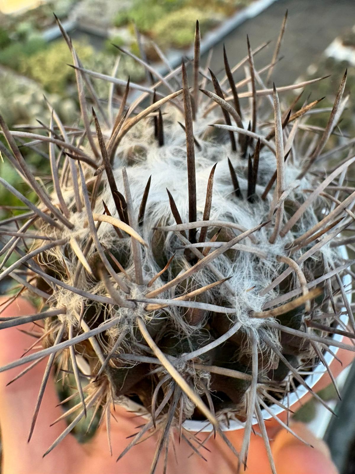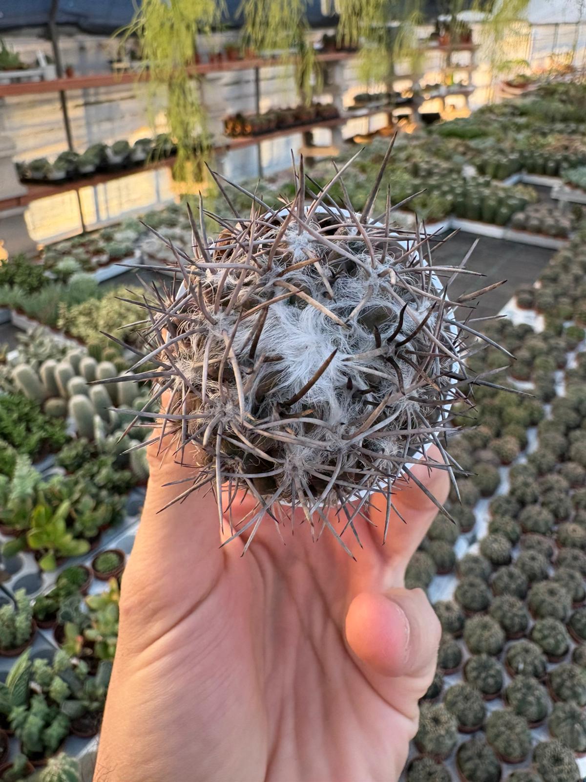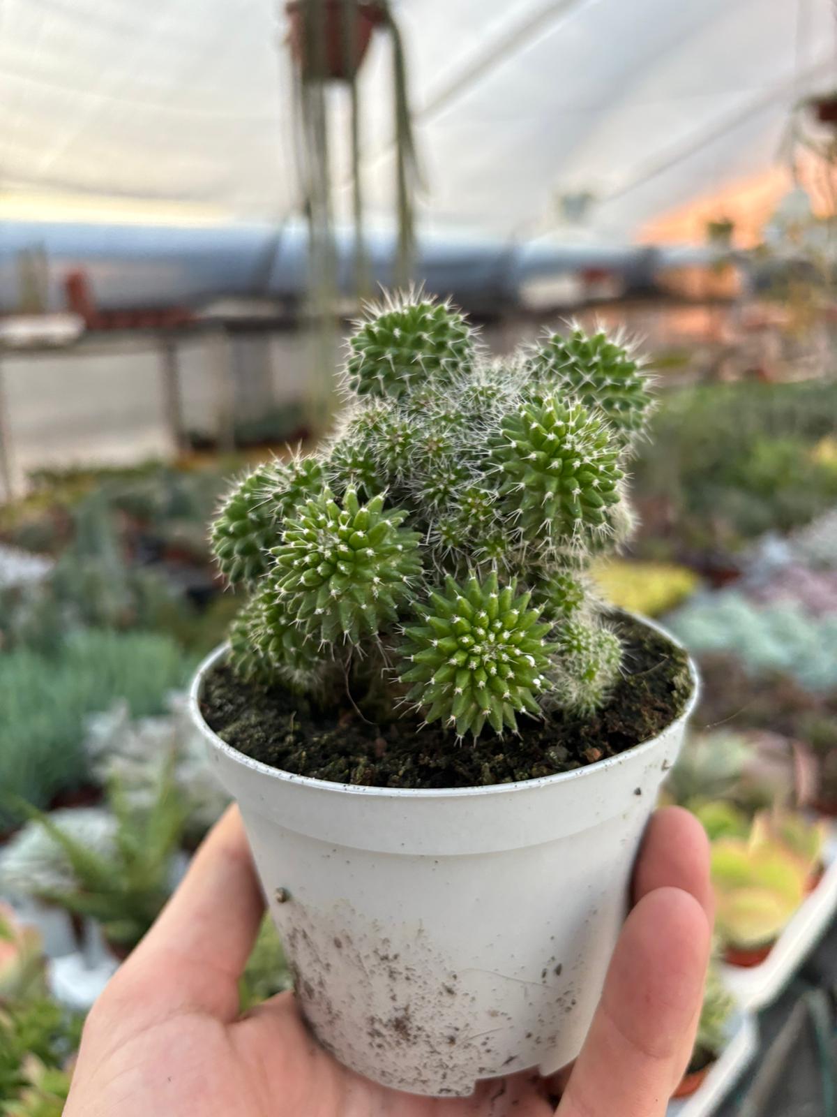 Mammillaria nejapensis è una cactacea messicana di piccole dimensioni, molto apprezzata per il suo aspetto ordinato e decorativo. Presenta un fusto globoso con tubercoli disposti a spirale e spine bianche, con centrali leggermente più scure che ne esaltano il contrasto. In primavera produce una graziosa corona di fiori bianchi o rosati attorno all’apice, seguita da piccoli frutti rossi ornamentali.